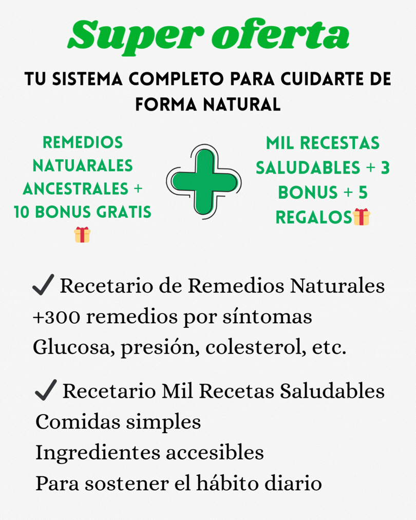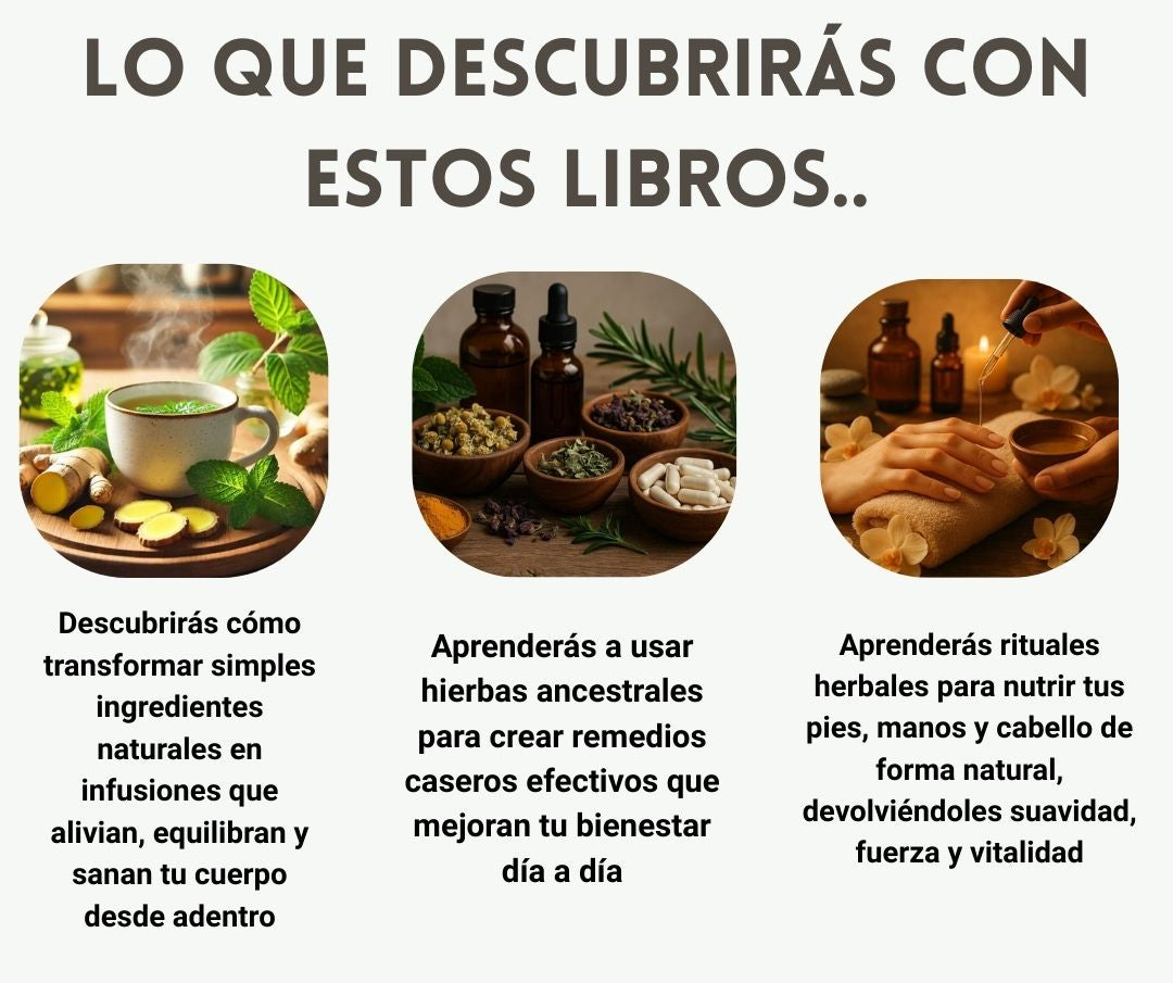 El libro contiene una recopilación ancestral de remedios naturales para molestias comunes, explicados paso a paso, con ingredientes simples y accesibles. Además, incluye 10 bonus exclusivos que amplían las herramientas de bienestar natural.